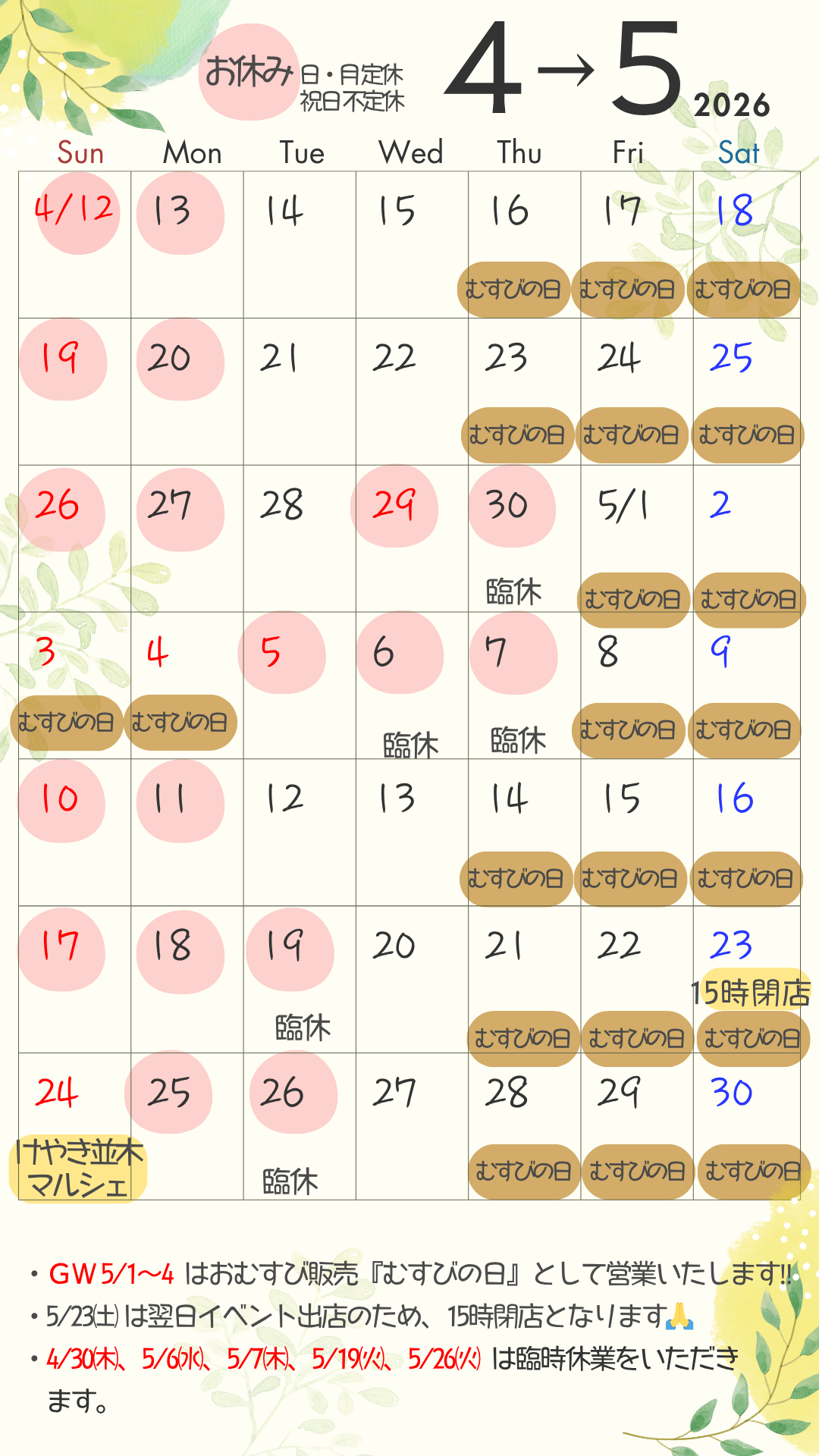 ■おむすびetc加工品販売:木曜・金曜・土曜
