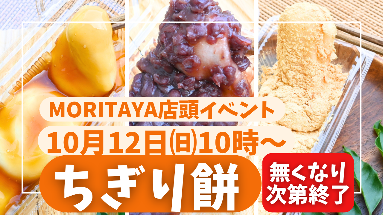 ▶MORITAYA公式LINEのメニューボタン、【店頭受取】➔【10月12日㈰】の日付選択をすると、『ちぎり餅メニュー』が登場します。
